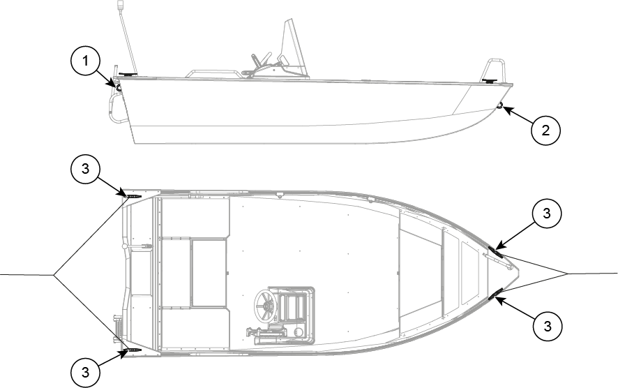 Figur 1. Buster XS/XSr fortøynings- og slepepunkter