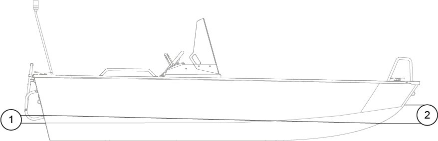 | 2 | Ved baug: ned fra chine langs baugen | 533 mm (21") |